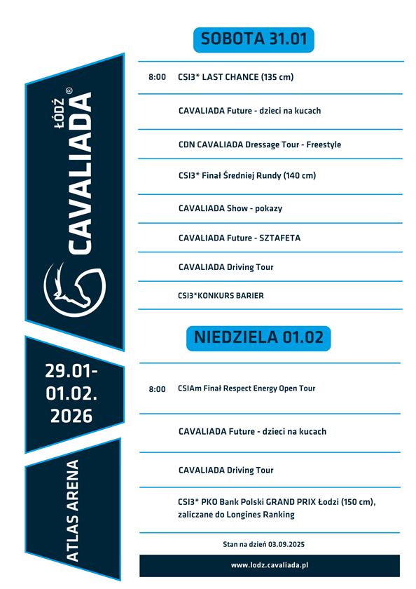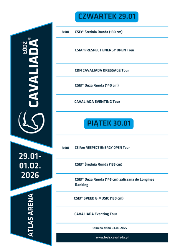 CAVALIADA Łódź CSI3*│29.01-01.02.2026 r. miejsce: ATLAS ARENA